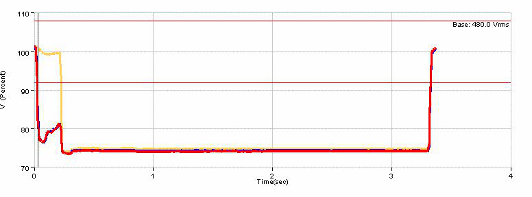 Encore系列系統(tǒng)正在監(jiān)測紐約市一家主要國際銀行的 數(shù)據(jù)中心。 該設施有兩個相同的在線靜態(tài)UPS系統(tǒng)來 自同一主要制造商。 對各UPS模塊的輸入輸出進行監(jiān) 控。 2月19日午夜過后不久發(fā)生了3.3秒的上游凹陷,起源 于公用電網(wǎng)。 凹陷深度約為480VAC標稱的75%。 凹 陷導致高層建筑電梯控制系統(tǒng)受損,但沒有跡象表明 關鍵系統(tǒng)受到影響。 然而,進一步的調查證明了這一 點... 在這種電力事件的情況下,UPS或關鍵系統(tǒng)都沒有報告 任何警報,但Encore系列監(jiān)控系統(tǒng)表明,兩個UPS中的 一個經(jīng)歷了過壓狀態(tài),與公用事業(yè)凹陷恢復正常相一 致。 峰值電壓超過標稱電壓的107%,幾乎520V! 這完全超出了UPS的規(guī)格。 過電壓條件是 不可取的,因為它們會應力和損壞計算機和其他電 源,導致關鍵的系統(tǒng)故障。