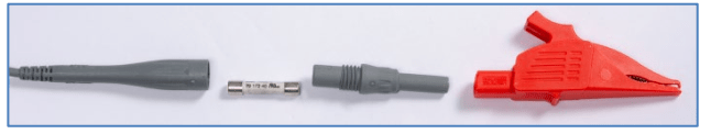 出于測試安全的考慮,電壓測試引線中配有保險絲,如下: